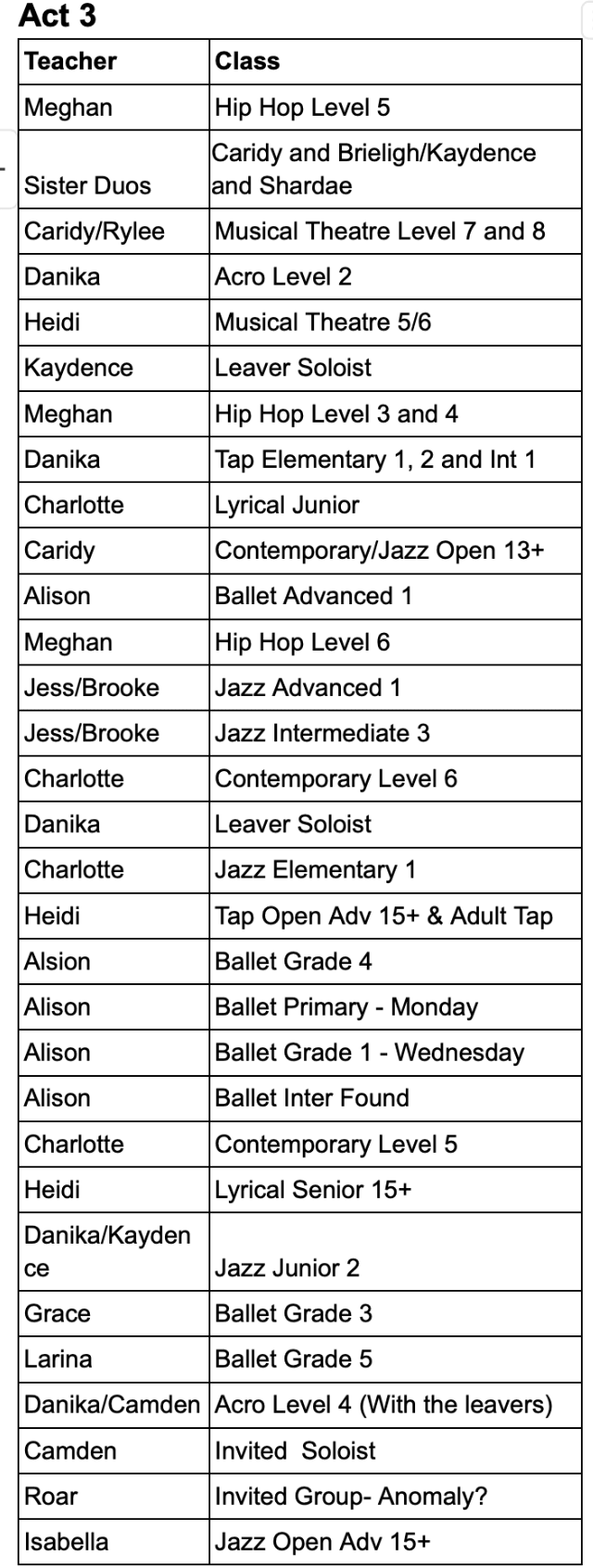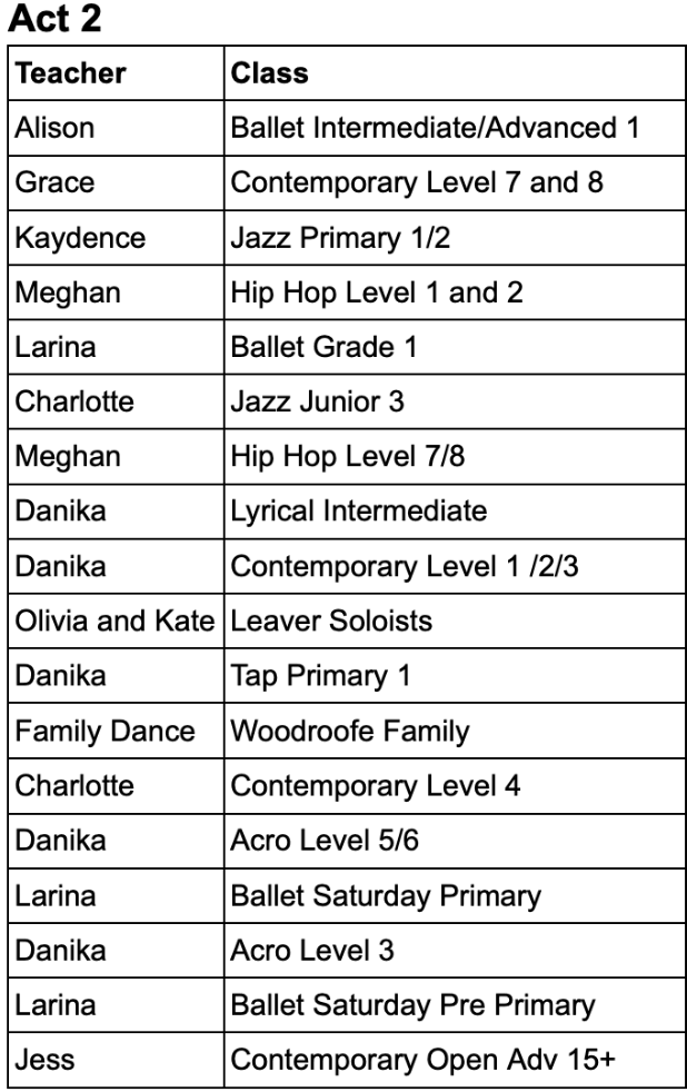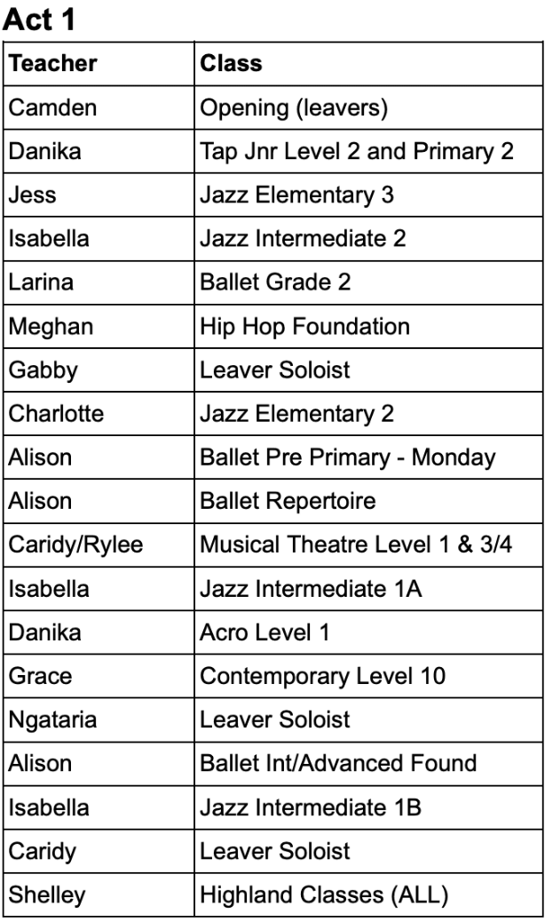 To find out what act your child is in please see the tables under this post, the teachers will also post this information in BAND and there will be a list at the admin desk.