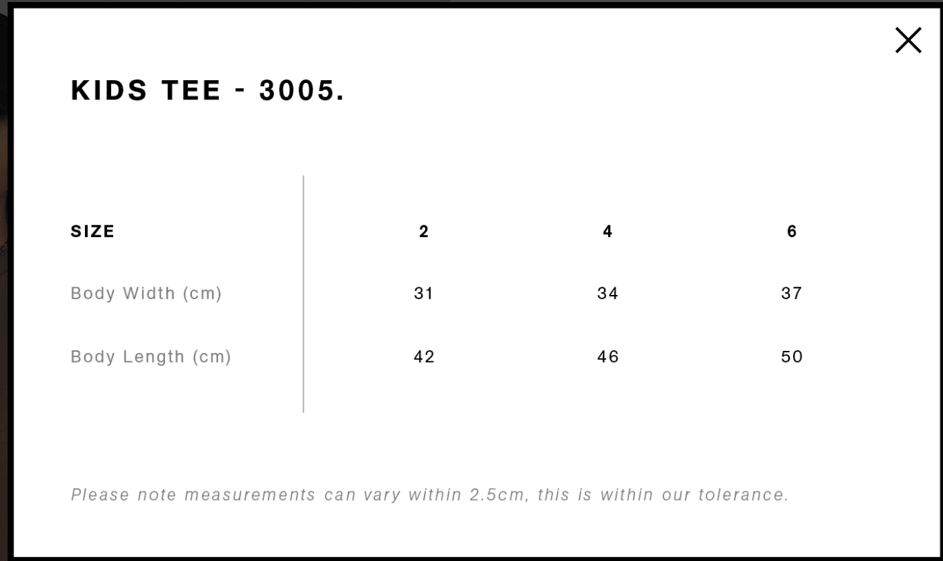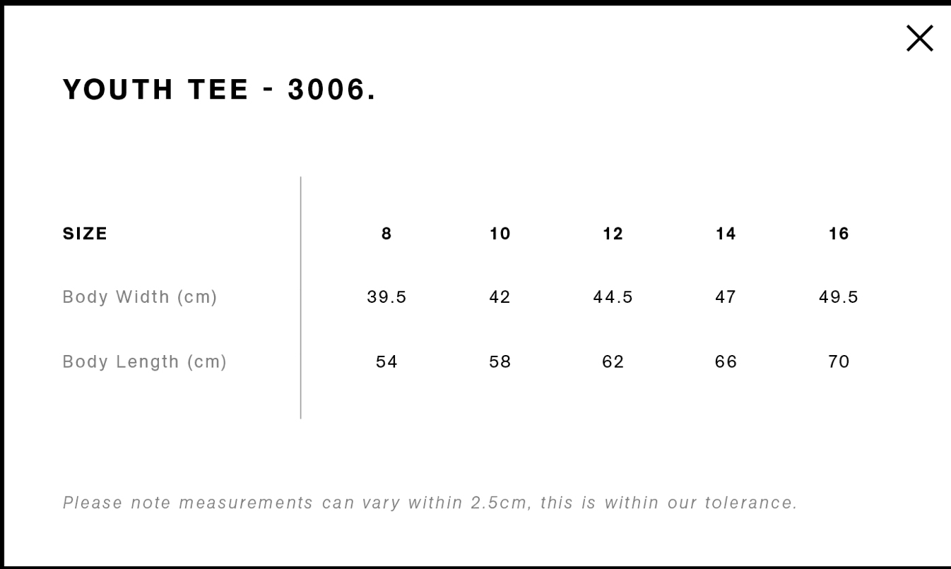 Size guides to order Concert Tee Shirt